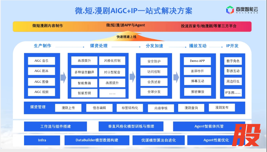 记者获悉,百度智能云此次发布的AI漫剧行业解决方案,聚焦“从创意到成片”的全链路能力整合,覆盖剧本生成、分镜拆解、角色与场景设定、画面生成、动态演绎、配音配乐及内容管理等核心环节。通过模型能力与行业工具链的结合,原本高度依赖人工分工的制作流程正在被拆解和重组,使创作团队能够以更轻量的方式完成高频内容生产。